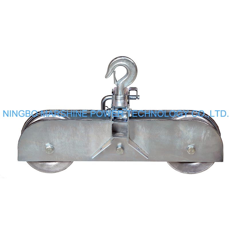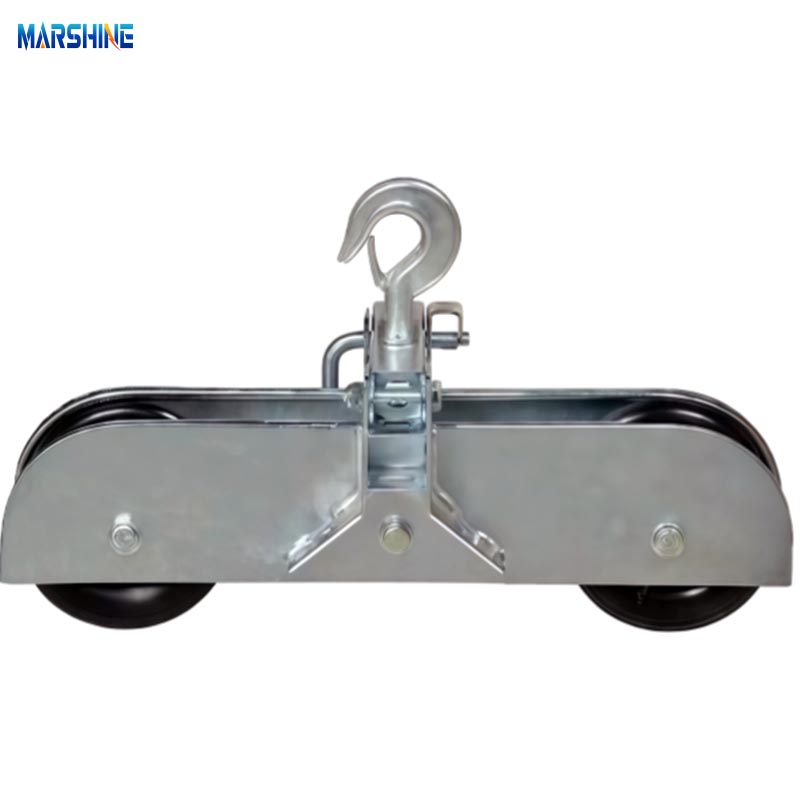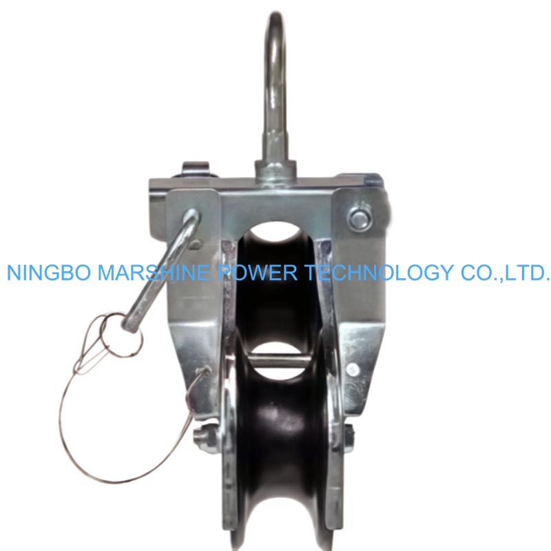 Rolki do mocowania kabli ze stalową ramą typu szeregowego MARSHINE to profesjonalne narzędzie do naciągania linii kablowych, używane do prowadzenia i podtrzymywania przewodów podczas ciągnięcia linii nad głową. Połączenie mocnej stalowej ramy z szeregowymi (wieloma) nylonowymi rolkami pozwala temu narzędziu zapewnić płynne prowadzenie kabla przy minimalnym tarciu i chronić płaszcz kabla. Solidna konstrukcja rolek charakteryzuje się dobrą nośnością, a nylonowe rolki pracują cicho i stabilnie. Dlatego jest to idealny wybór do prac związanych z budową linii energetycznych, gdzie szybkość, bezpieczeństwo i dbałość o kable są koniecznością.